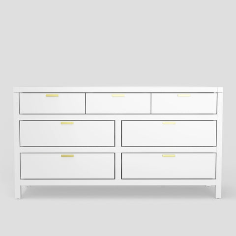 Bring contemporary charm to your bedroom ensemble while keeping clutter to a minimum with this stylish dresser. The Carmel 7-Drawer Dresser showcases clean lines and a neutral Cappuccino finish to make decorating easy. Features include top felt-lined drawers and nickel drawer handles. Matching...- Product Detail