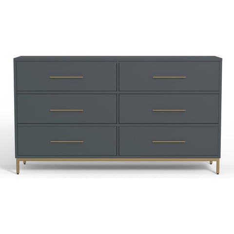 Add modern flair to your bedroom with the Madelyn Slate Gray 6-Drawer Dresser. Providing storage for your essentials, this piece is crafted from sustainably sourced Mahogany. Features include a felt-lined top drawer, English dovetail construction and metal ball bearing drawer glides. The clea...- Product Detail