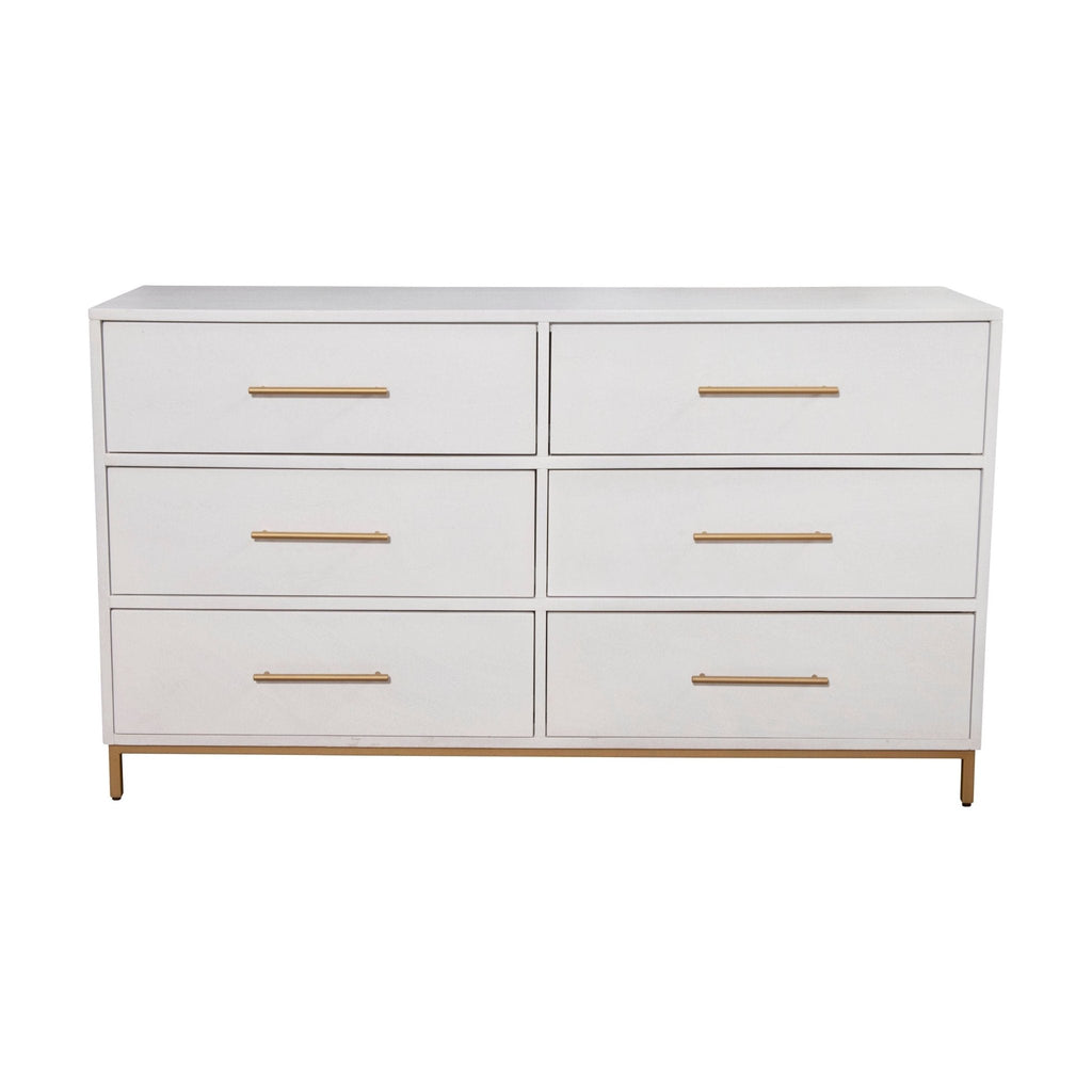 Add modern flair to your bedroom with the Madelyn White 6-Drawer Dresser. Providing storage for your essentials, this piece is crafted from sustainably sourced Mahogany. Features include a felt-lined top drawer, English dovetail construction and metal ball bearing drawer glides. The clean lin...- Product Detail